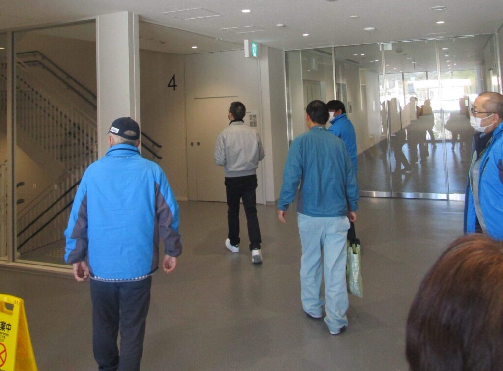 まずは山口市役所で清掃業務をされている様子を見学しました。業務の進め方や働き方など、社員の方に質問して「働くこと」がイメージできた様子でした。