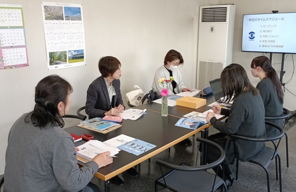今回は「仕事と家庭両立応援企画」として子育て中の女性を対象に、建設会社の事務を体験させていただきました。実際に、仕事と家庭を両立しながら働いている社員さんのお話を聞いたり、電卓を使ってお仕事体験をすることで、参加者の方も「両立しながら働く」ということがイメージで来たのではないかと思います。