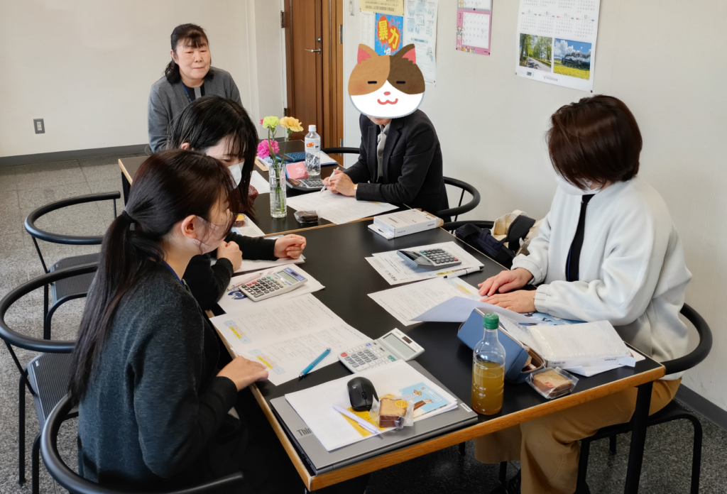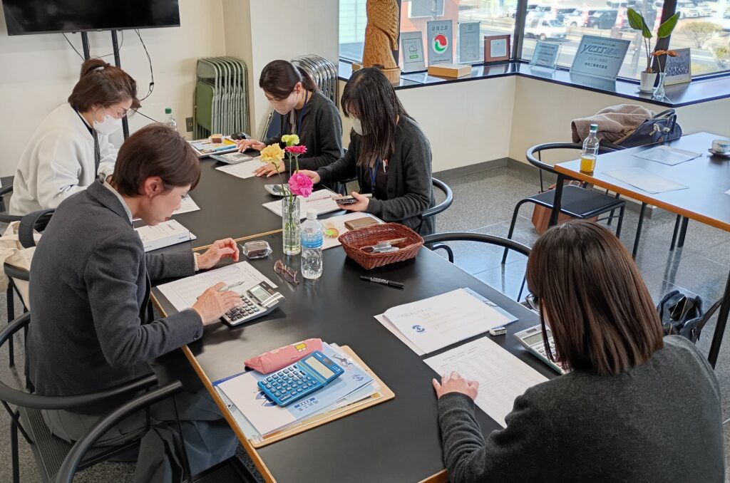 次は、帳簿の仕訳処理の考え方や方法を説明していただき、実際に簡単な仕訳にチャレンジ!簿記に関わることなので分かりづらい部分もありましたが、社員さんから丁寧に教えていただき仕訳することができました。